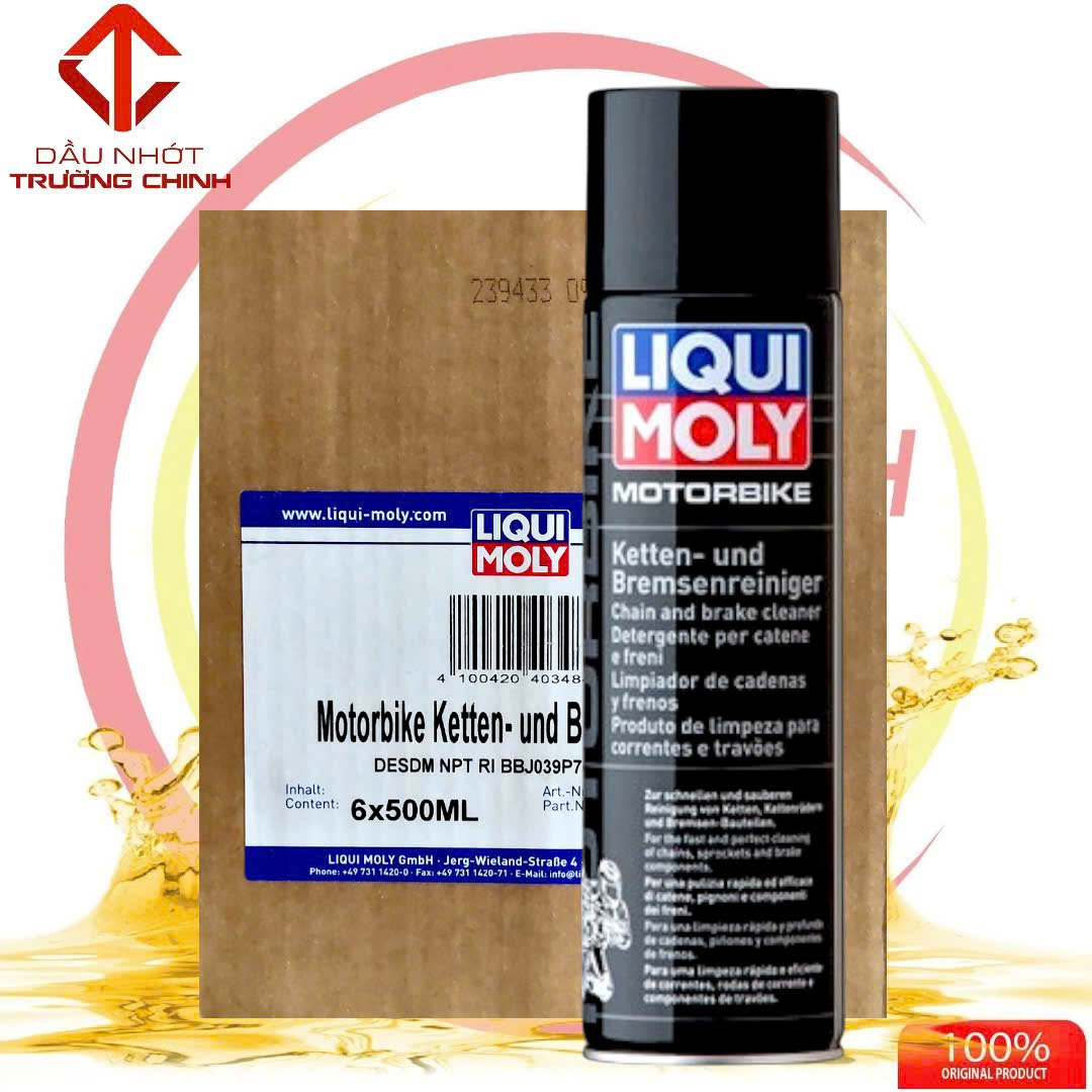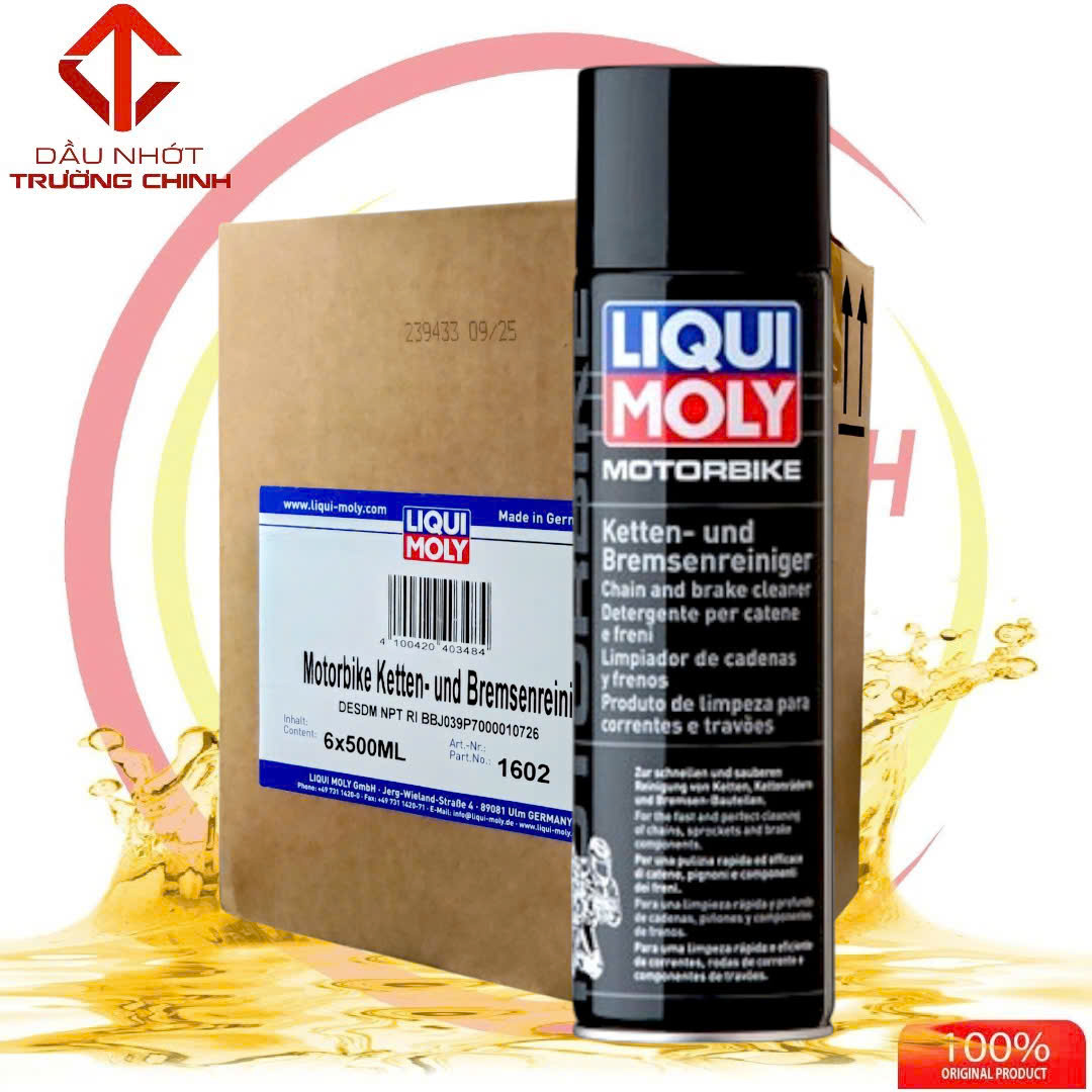 Chai vệ sinh sên và phanh Liqui Moly Motorbike Chain and Brake Cleaner (mã 1602) là dung dịch tẩy rửa chuyên dụng được thiết kế để làm sạch nhanh chóng các vết dầu mỡ, bụi bẩn và rỉ sét trên hệ thống truyền động và phanh của xe máy.