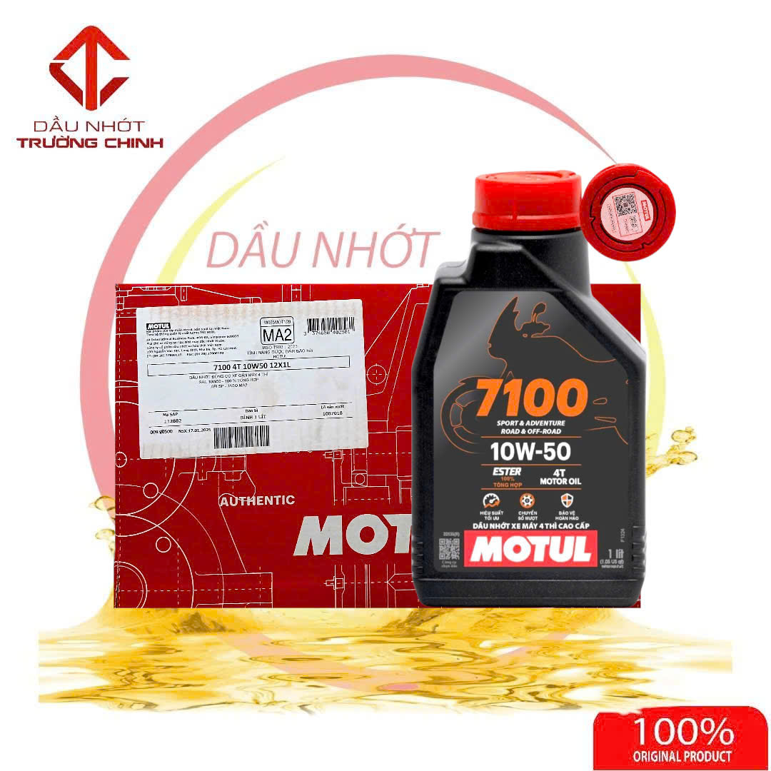 Motul 7100 4T 10W50  ứng dụng nhiều công nghệ nhớt động cơ xe số tiêu chuẩn giúp nhớt có độ bền cao và hỗ trợ bôi trơn động cơ xe số ổn định nhất.