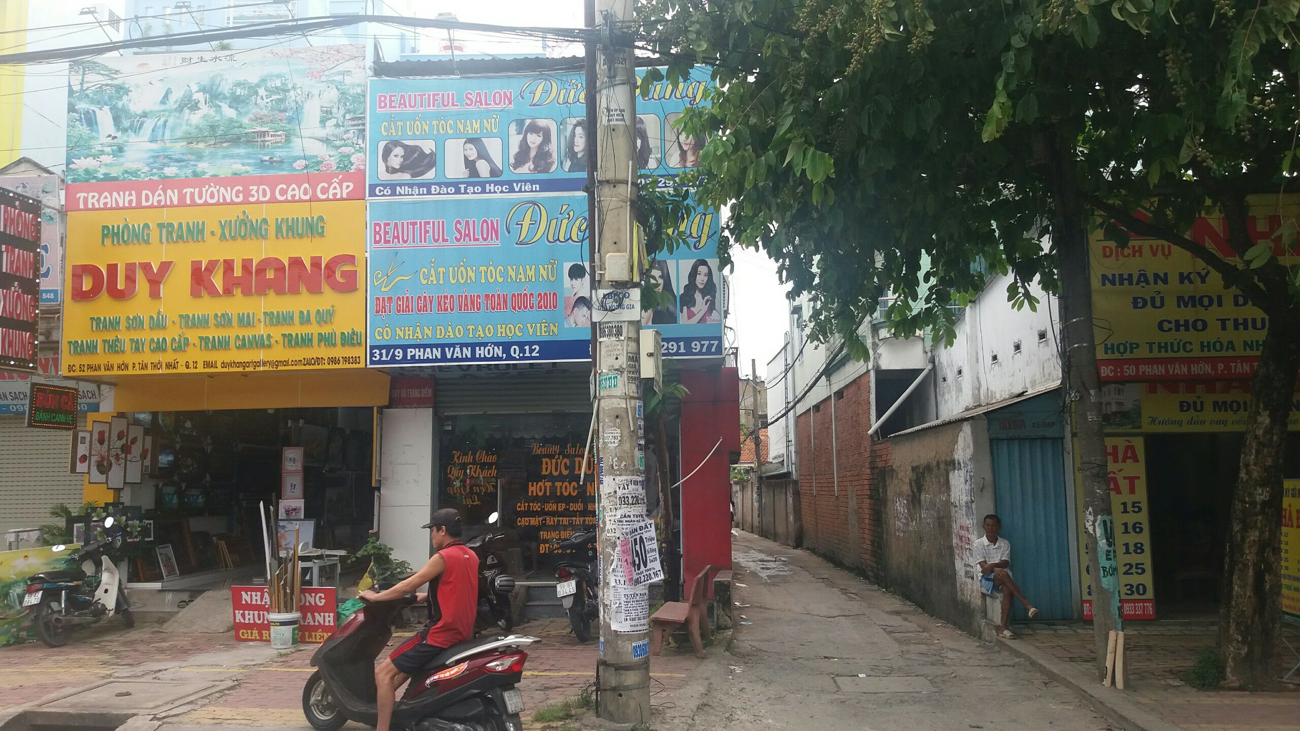 2/ Từ đường Phan Văn Hớn thuộc Phường Tân Thới Nhất, Quận 12 (gần khu vực ngã 3 Trường Chinh - Phan Văn Hớn, đối diện quán nhậu Làng Chài PHÚ QUỐC), quý khách tìm đến hẻm 50 (giống như hình bên dưới), quẹo vào hẻm đi thẳng gặp bờ tường chung cư cao cấp Kim Tâm Hải, sau đó quẹo trái một đoạn ngắn là đến tiệm.