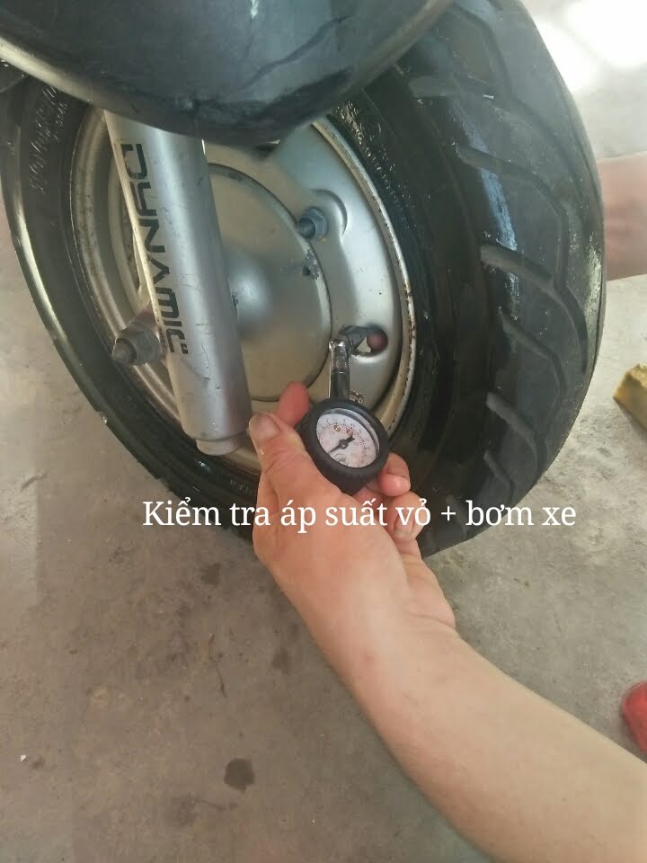 6/ Kiểm tra áp suất vỏ xe + bơm hơi