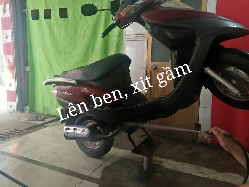 1/ Lên ben nâng, xịt gầm và toàn bộ thân xe cho sạch đất cát...