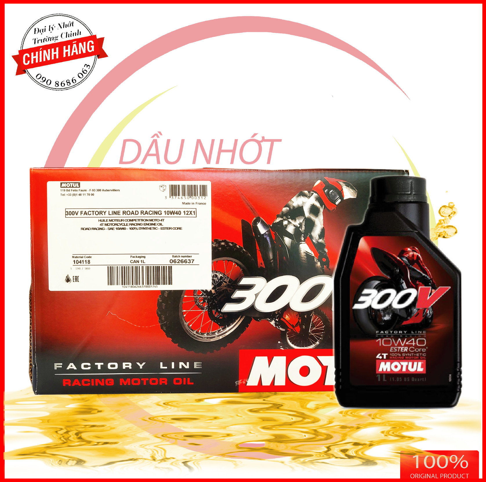 Motul 300V Factory Line 10W40 được biết đến là sản phẩm nhớt chính hãng chất lượng của tập đoàn dầu nhớt Motul và đánh dấu sự vươn tầm vượt trội của hãng đối với thị trường nhớt xe máy. Motul 300V Factory Line 10W40 1L được tập đoàn nhớt Motul thiết kế đặc biệt cho các loại xe mô tô phân khối lớn, xe đua và xe thể thao, dựa trên sự hợp tác và nghiên cứu kĩ thuật cùng với các đội đua xe mô tô danh tiếng hàng đầu trên thế giới